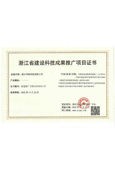 浙江省建設(shè)科技成果推廣項目證書